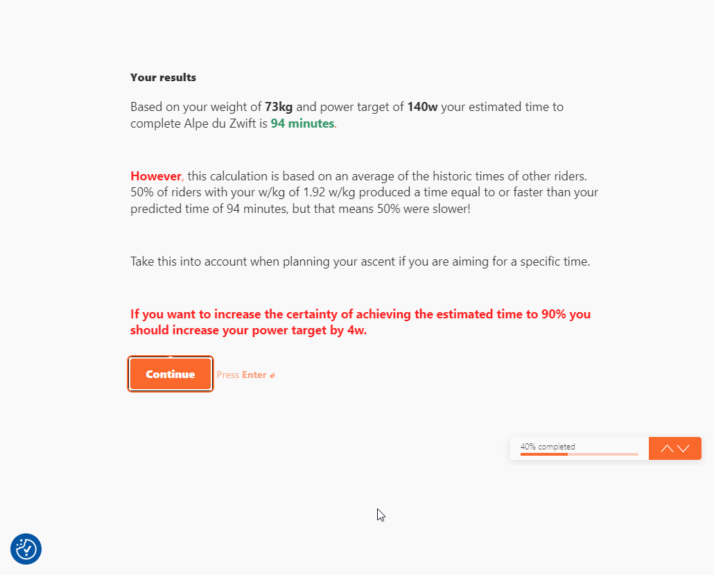 Alpe du Zwift Time Calculator - Alpe du Zwift Time Calculator