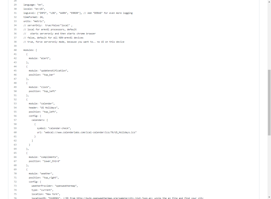 라즈베리 파이 4B 매직미러 만들기(#4) -매직미러 config.js 구조 알아보기 본문