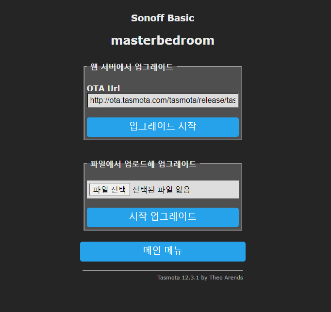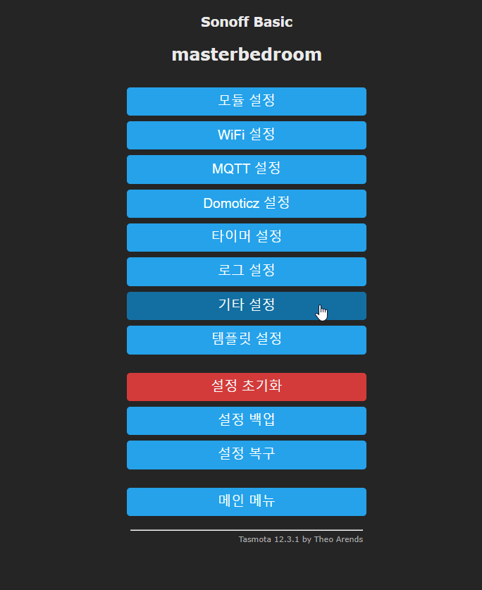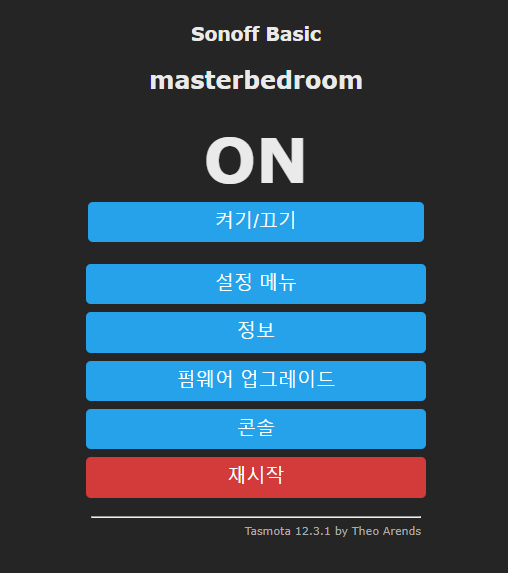 tasmota admin 페이지에 접근해서 등록된 Sonoff 스위치를 클릭하면 각각의 스위치의 관리 화면이 나온다.