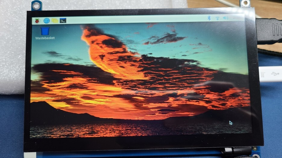 소형 모니터에도 전원을 연결하고 HDMI 케이블을 이용하여 라즈베리 파이와 연결하여 화면 신호를 받을 수 있도록 구성한다. 연결이 다 되었으면 최종적으로 라즈베리 파이의 전원 케이블을 연결하여 전원이 켜지게 한다. 라즈베리 파이는 별도의 전원 버튼이 없기 때문에 전원이 연결되면 바로 켜지는 구조이다.