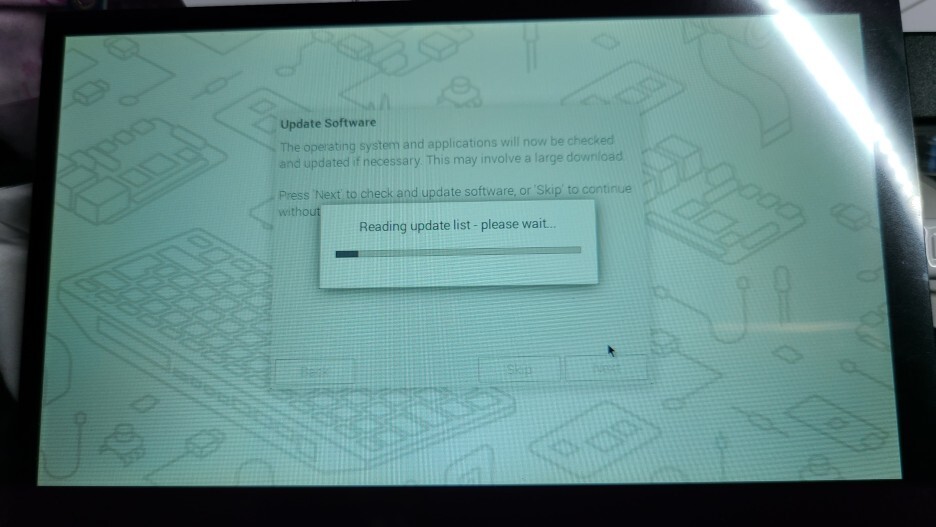 업데이트가 완료되었다는 메시지가 뜨고 모든 설정이 완료되면 라즈베리 파이 OS가 구동되고 리눅스와 비슷한 화면의 바탕화면과 태스크바를 확인할 수 있다.