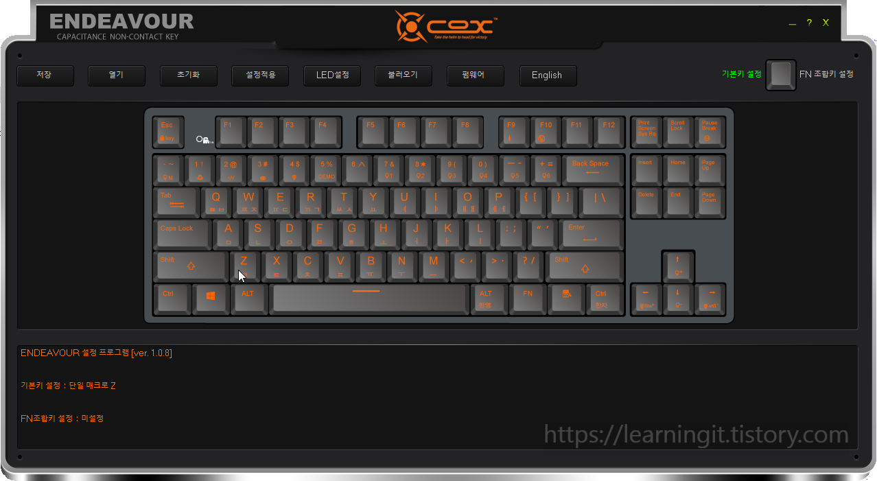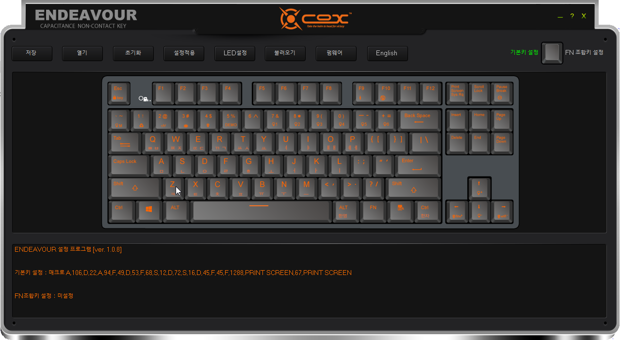 매크로를 사용하기 전에 반드시 주의해야할 사항이 있다. 콕스 엔데버용 프로그램을 실행하고 키보드의 설정을 불러오기를 먼저 수행해야 한다.