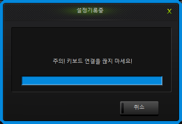 키보드의 백라이트가 단일 색상으로 변경되며 누를때 마다 다른색상으로 변경됨. 설정 후 키보드의 백라이트 색상이 서서히 변함.